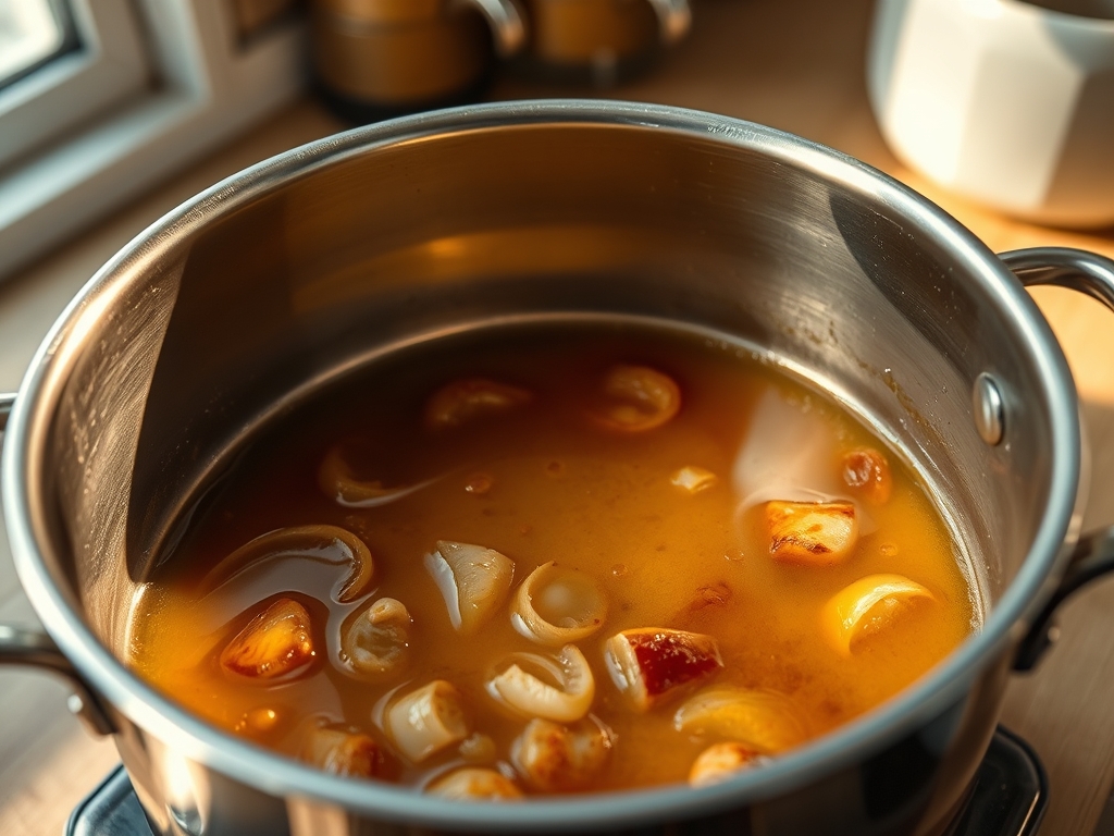 Pro Tip: Deglazing captures the caramelized proteins that would otherwise be lost to the dishwasher. This step is the difference between a pale liquid and a rich, professional-grade stock.